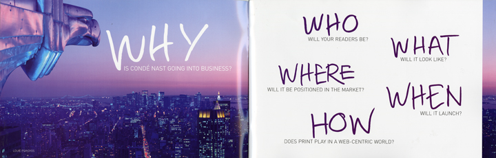 Is Condé Nast Portfolio going to be the last major magazine launch from a major magazine company in the United States as some say? No, but the prophets of doom and gloom are running out of reasons to promote their “print is dead” concept. Every time they see a major launch on the horizon they promote it as the last and they start asking the “doubting Thomas” questions. On April 24 Condé Nast Portfolio will launch in print and on line, and it WILL BE the “the talk of the town.” The magazine promises to be “the most highly anticipated media event of 2007.” From what I’ve seen and heard so far, I have no doubt it WILL BE. Stunning photography and in depth reporting and analysis are going to be the anchors of the new magazine. Think The New Yorker meets Vanity Fair meets Vogue meets The Wall Street Journal, all trying to “captivate” YOU. Their media kit gives a glimpse of what I am talking about. Designed as the old accounting ledgers, the kit uses photography and typography in a way I rarely saw in such products. When opened the size of the spread is 34 inches wide and anything on the spreads will stop you and force to look and read. Unlike any other “event launch” that took place in years past, this one focuses on content and relevance, and not on publishers and editors. However, I must quickly add that when I visited with the group president and publishing director of Condé Nast Portfolio David Carey in New York City recently, I saw nothing but pride, passion and joy in his eyes every time he mentioned Portfolio, its content, its web site, its editor and staff and its ad pages. David Carey is going to be a proud daddy on April 24, 2007 and his “love of new magazines” is going to manifest itself in one healthy glossy baby named Portfolio.