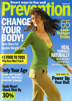 It used to be said you can judge a book by its cover, well in the case of Prevention, you can’t. The cover of the April issue may look the same like the cover of the March issue, but the insides of the April issue are a completely different story. Prevention’s editor-in-chief Liz Vaccariello has added a surge of energy, color, photography and great content to the guts of the 57-year-old magazine. The new Prevention sports a pleasant, easy to navigate design with splash pages introducing every section of the magazine. Whether it is Health, Real Life, Nutrition, Beauty, Fitness and Mind it is all in there. With an emphasis on the answers for “what is in it for me” questions, Prevention is a must read for every health conscious woman. Prevention maybe 57 years old, but the April issue looks and feels like a strong, healthy and ageless energetic women….