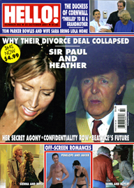 In the midst of the gossip weeklies raising their cover prices (In Touch and Life & Style from $1.99 to $2.99, and US from $3.49 to $3.99) the British import HELLO! is just doing the opposite by decreasing its American cover price from $6.95 to $4.99. This is the second time the British magazine seems to test the waters for a launch in the USA. Back in the late 80s HELLO! ran a full page ad in The New York Times offering a free sample issue of the magazine. Based on the response to that ad, the powers at HELLO! opted not to launch the magazine in the USA. But now, with OK doing better than expected and the gossip market still going strong, it looks as if HELLO! is testing the USA waters one more time. The magazine that had a limited distribution in the USA is now more widely distributed with an added yellow circle promoting the new reduced American price. Is the USA ready to welcome HELLO!? Wait and see is the name of the game for now. Keep your greetings and enjoy the British editions for now…