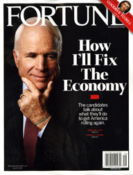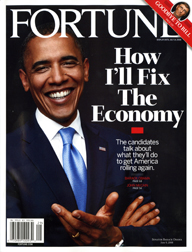 Fortune magazine on the other hand opted for giving the people the choice between the candidates. A split cover on newsstands offers readers the two candidates (each on his own cover) with the coverline How I’ll Fix The Economy. The editors at Fortune told min newsletter that they will let us know the result of the single copy vote at a later date.