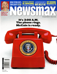 Newsmax magazine opted for the person who is ready when the Red Phone rings at 3:00 am. With the Red Phone being the big picture on the cover, the coverline informs readers that McCain is ready to take that call.
