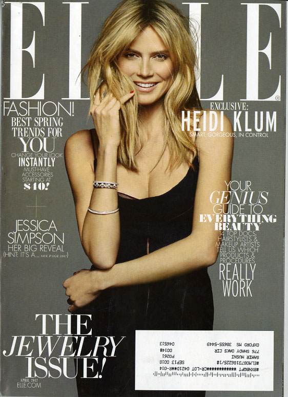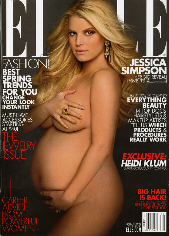 There are three covers for this issue, two newsstand editions and a subscriber’s. The newsstand issue offers a very pregnant Jessica Simpson, one nude, but strategically covered. The background colors are different, but the cover lines are the same. The subscriber’s issue features Heidi Klum, and while the Jessica Simpson story is listed, Klum owns the cover. It’s also missing one cover line story the newsstand issues have.