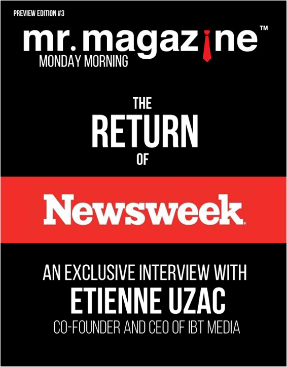 The man and his company’s reasons for the purchase and the return to print follow in the Mr. Magazine™ conversation with Etienne Uzac, Co-Founder and CEO of IBT Media. So sit back and enjoy Newsweek’s reemergence with a new company, a new future and a whole new leadership vision.