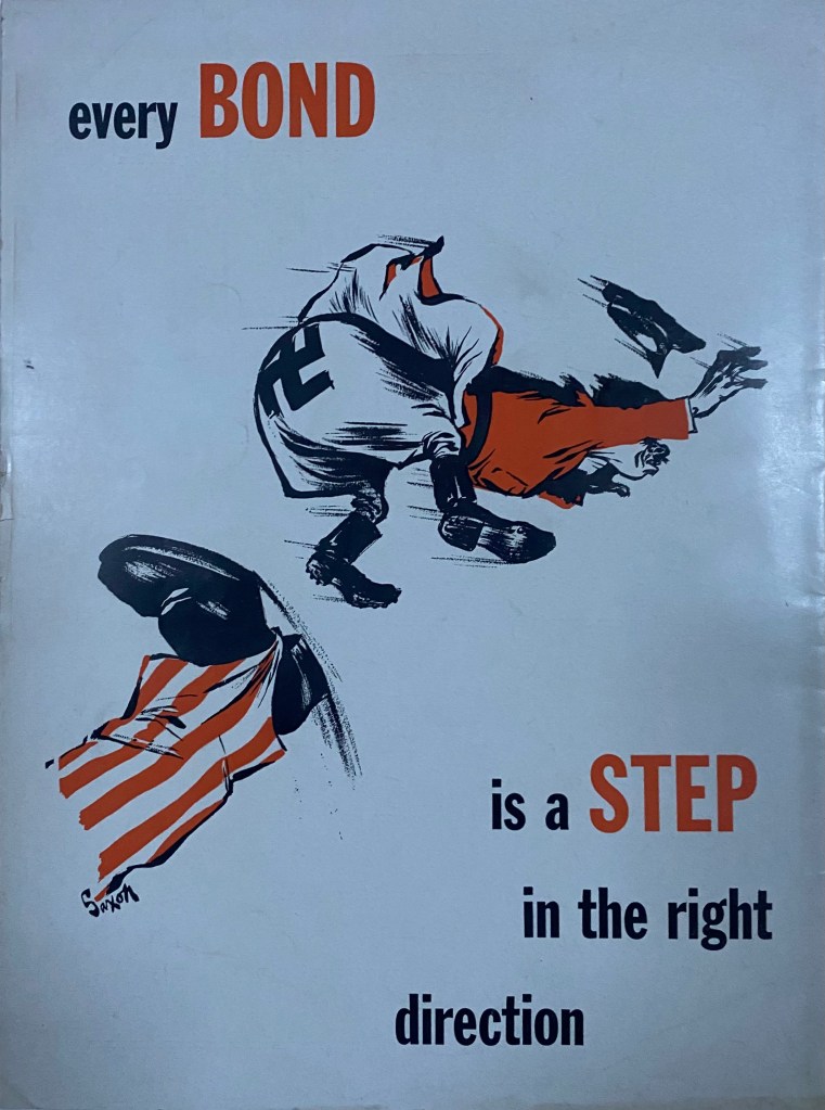 This brand new magazine with a tag line Best War Cartoons, Jokes and Anecdotes premiered with its December issue with a back cover cartoon supporting the United We Stand campaign and screaming “every BOND is a STEP in the right direction.” The magazine published by Dell Publishing Co., was the brainchild of Frances Cavanah and Ruth Cromer Weir, who were listed as the Compilers of the content.