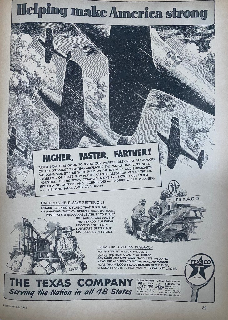 In the same issue of Liberty magazine an advertisement for Texaco read: Helping make America strong: